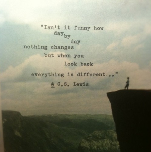 C.S. Lewis’in dediğim gibi “Günler geçerken hiçbir şey değişmiyor gibi görünürken geri dönüp baktığında her şeyin farklı olduğunu görmek komik değil mi?”